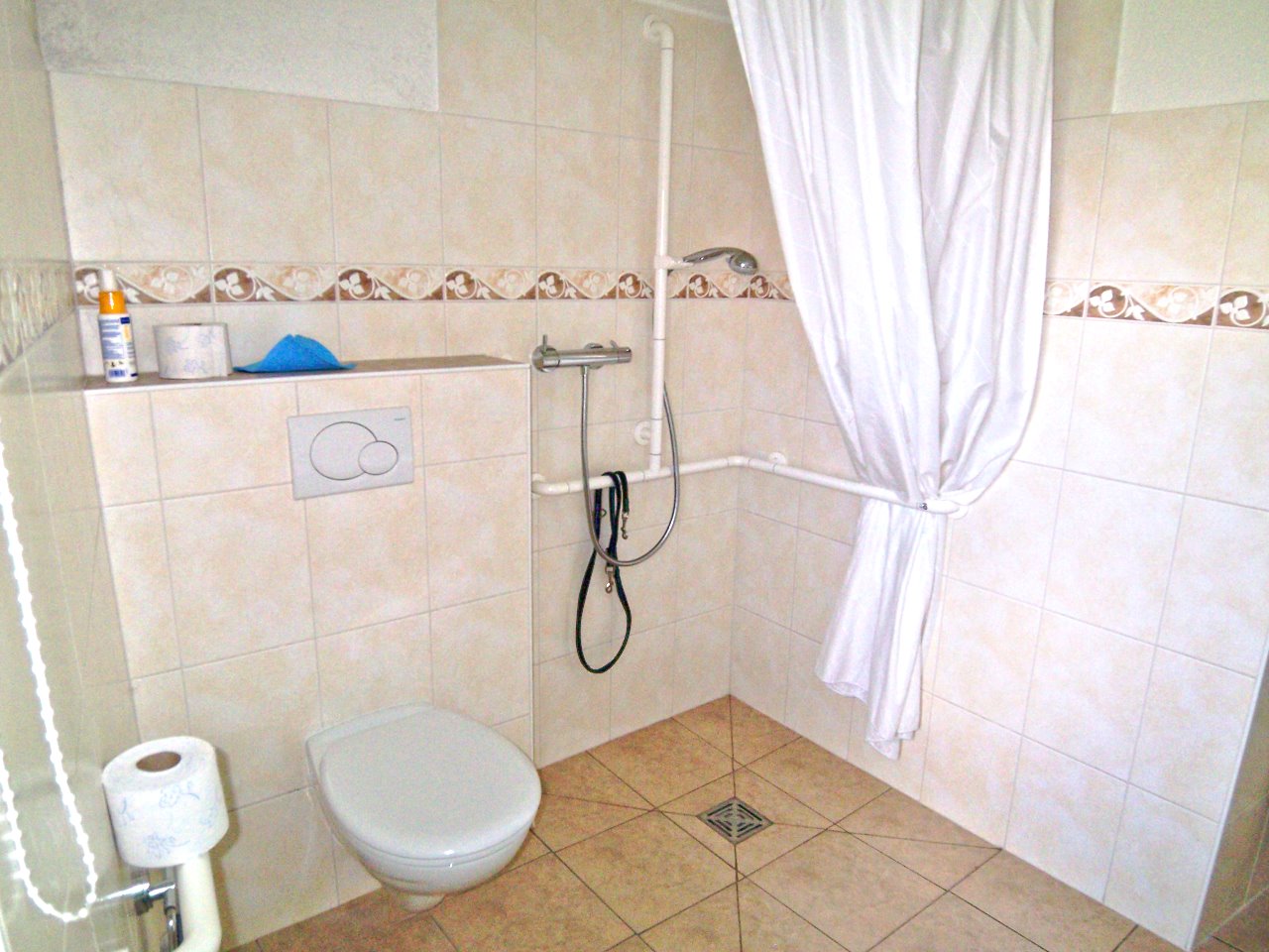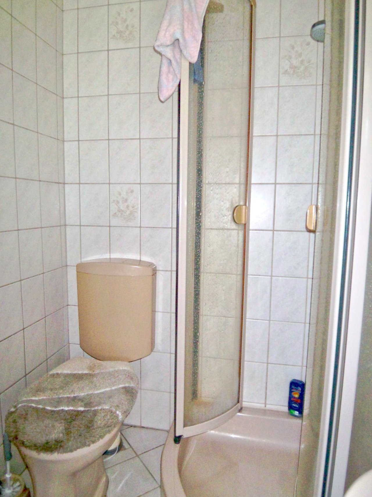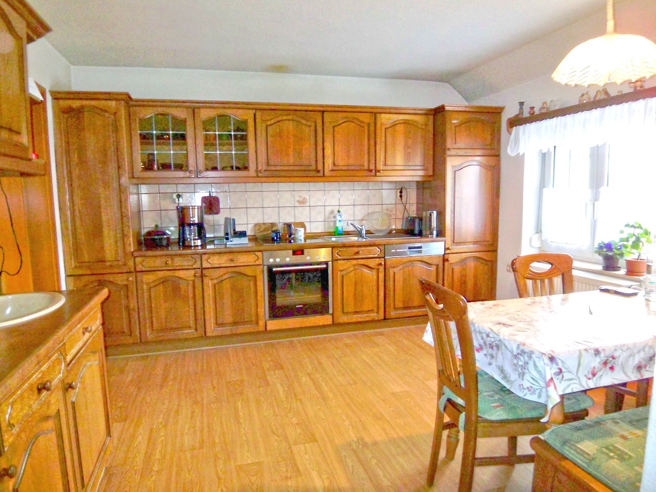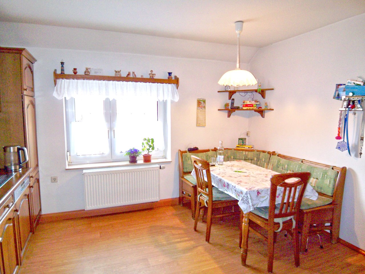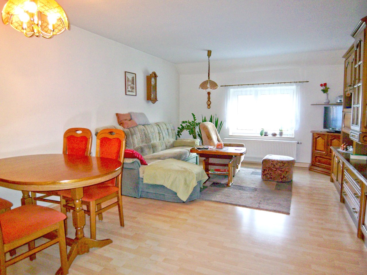 Wohnzimmer, Wohnküche mit Einbauküche (VB), Schlafzimmer, Bad mit Dusche, Waschtisch und WC, Diele mit Zugang zum Dachboden