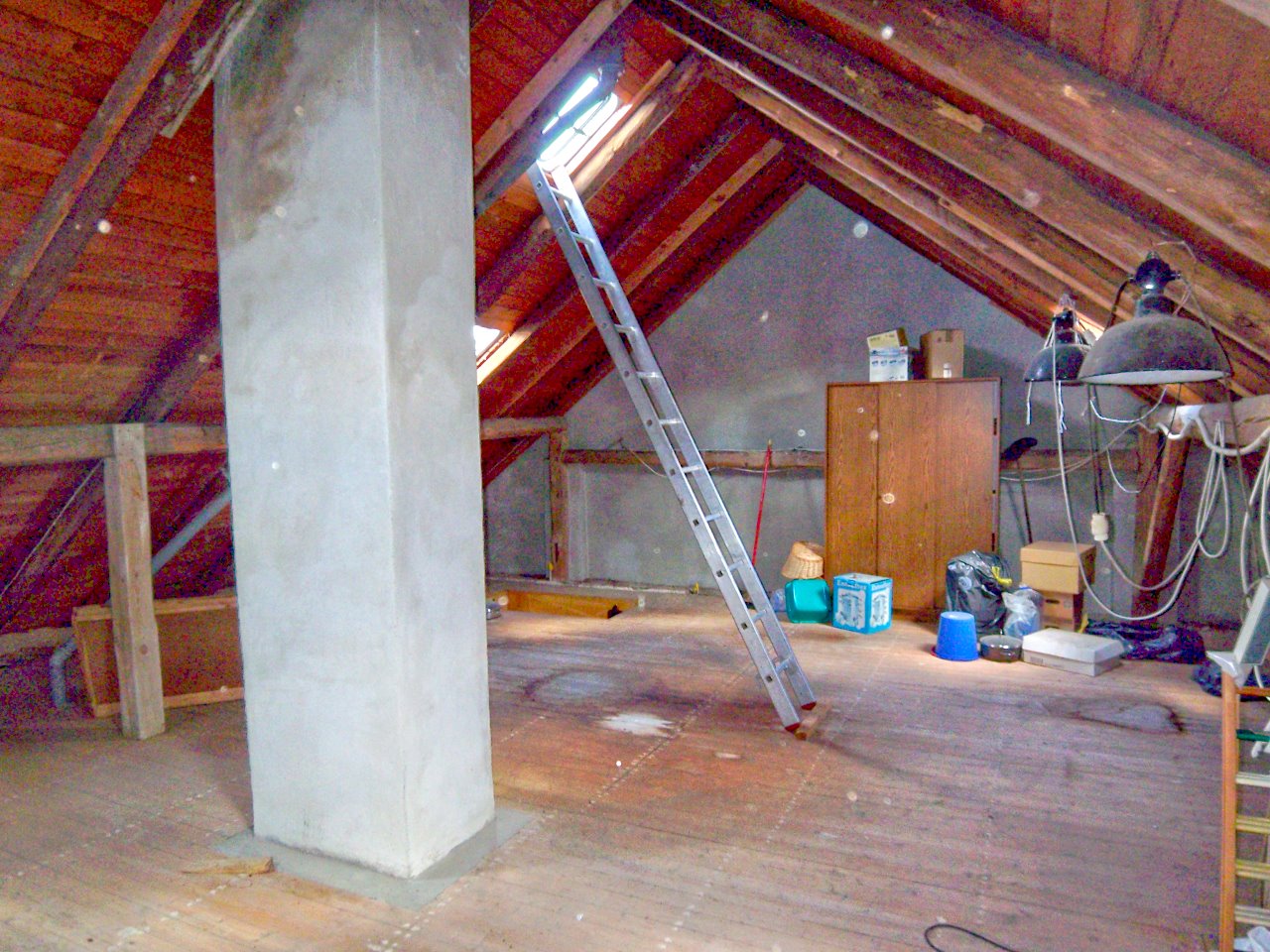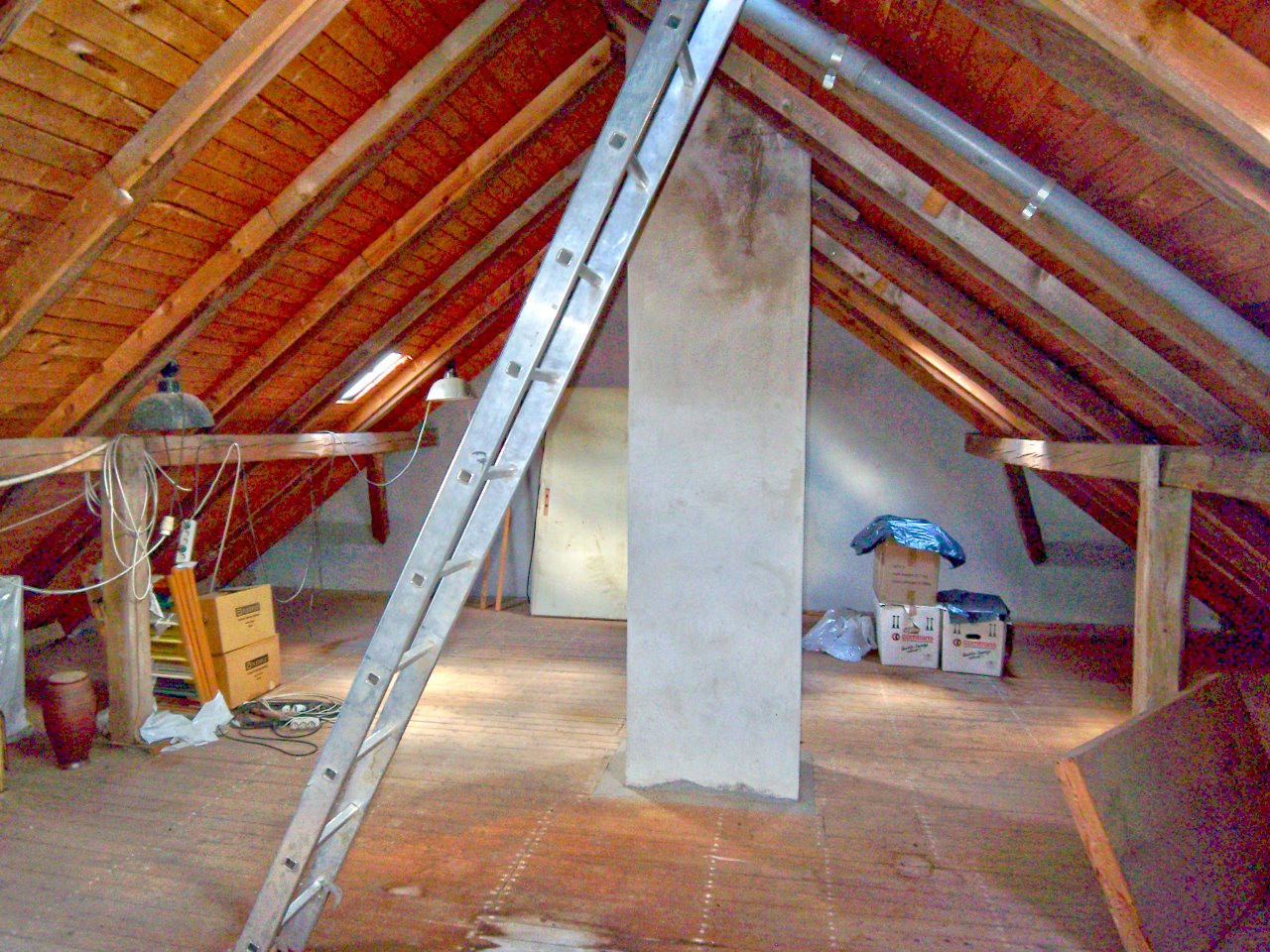 Wohnzimmer, Küche, Schlafzimmer, Kinderzimmer, Arbeitszimmer, Flur mit Zugang zum Dachboden