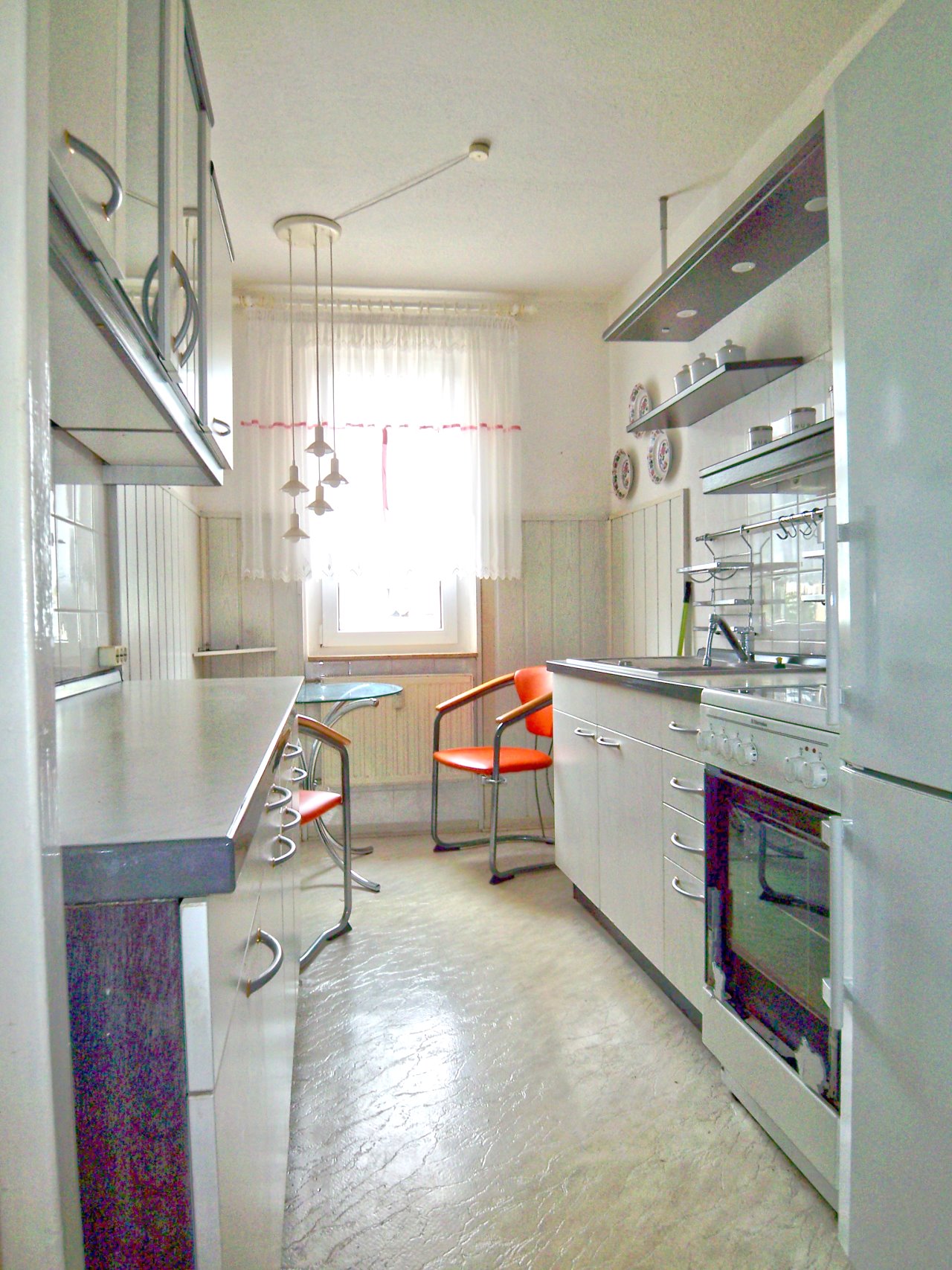 Fliesen, Teppichboden, PVC-Belag, Sat.-Anlage, Gegensprechanlage,