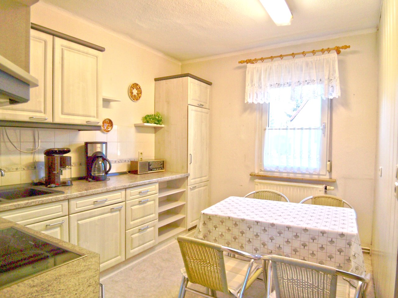 Wohnzimmer ~ 20 m², Küche mit EBK, Bad mit Wanne, Waschtisch