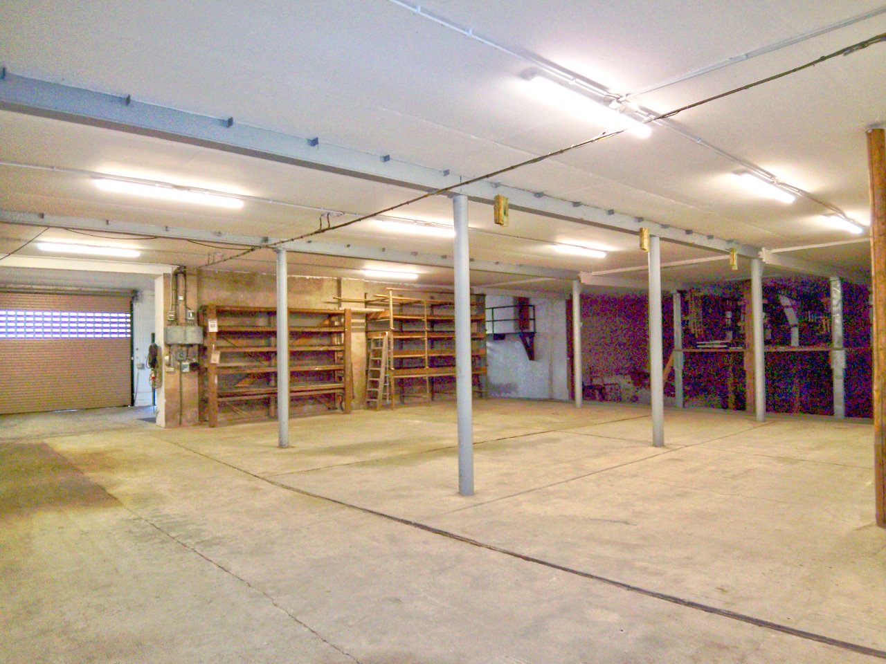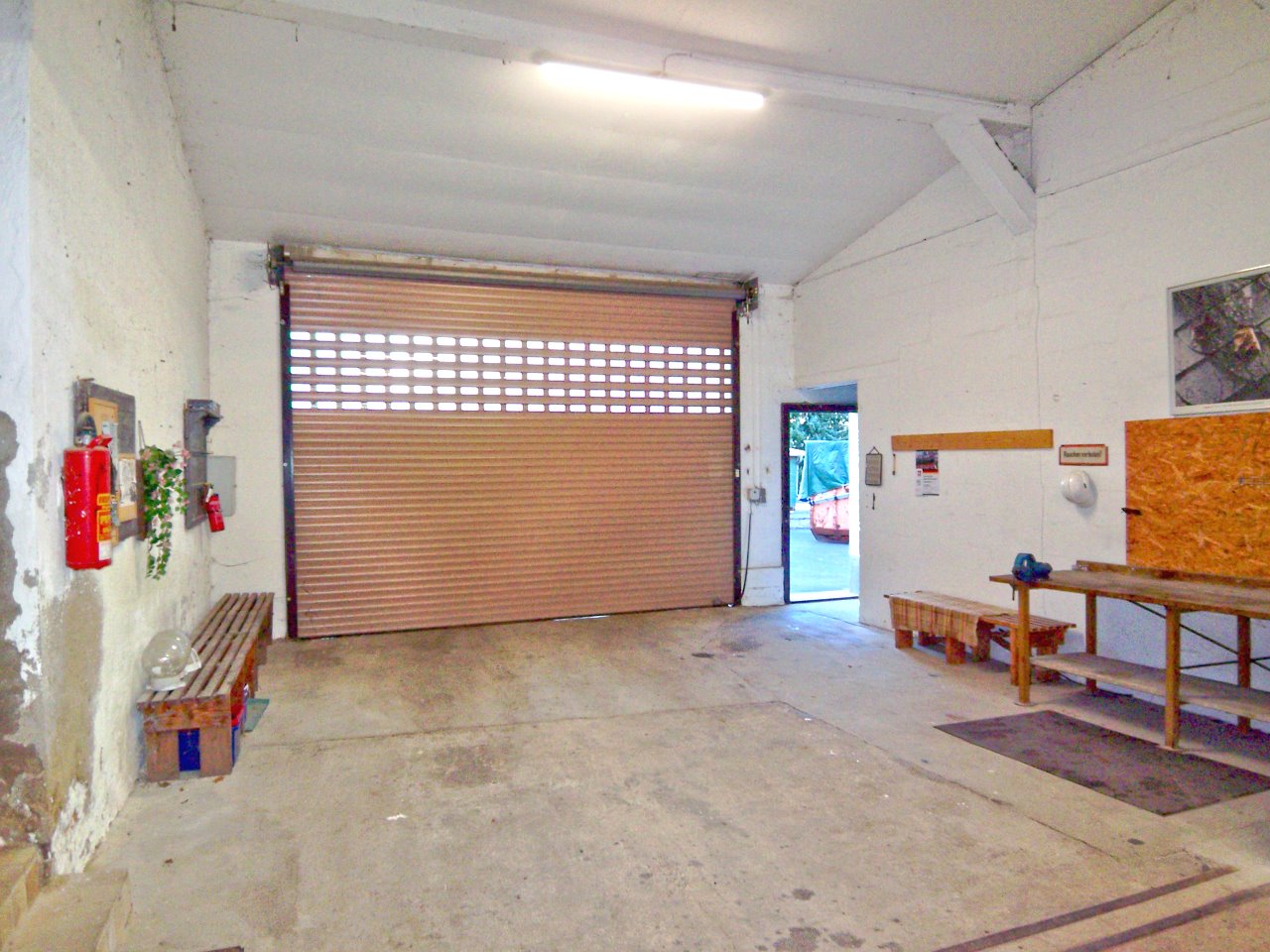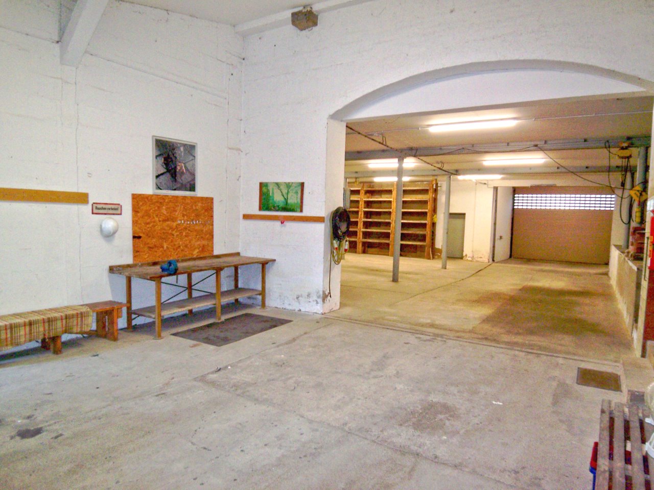 teilweise mit Lagerregalen, teilweise elektrische Rolltore