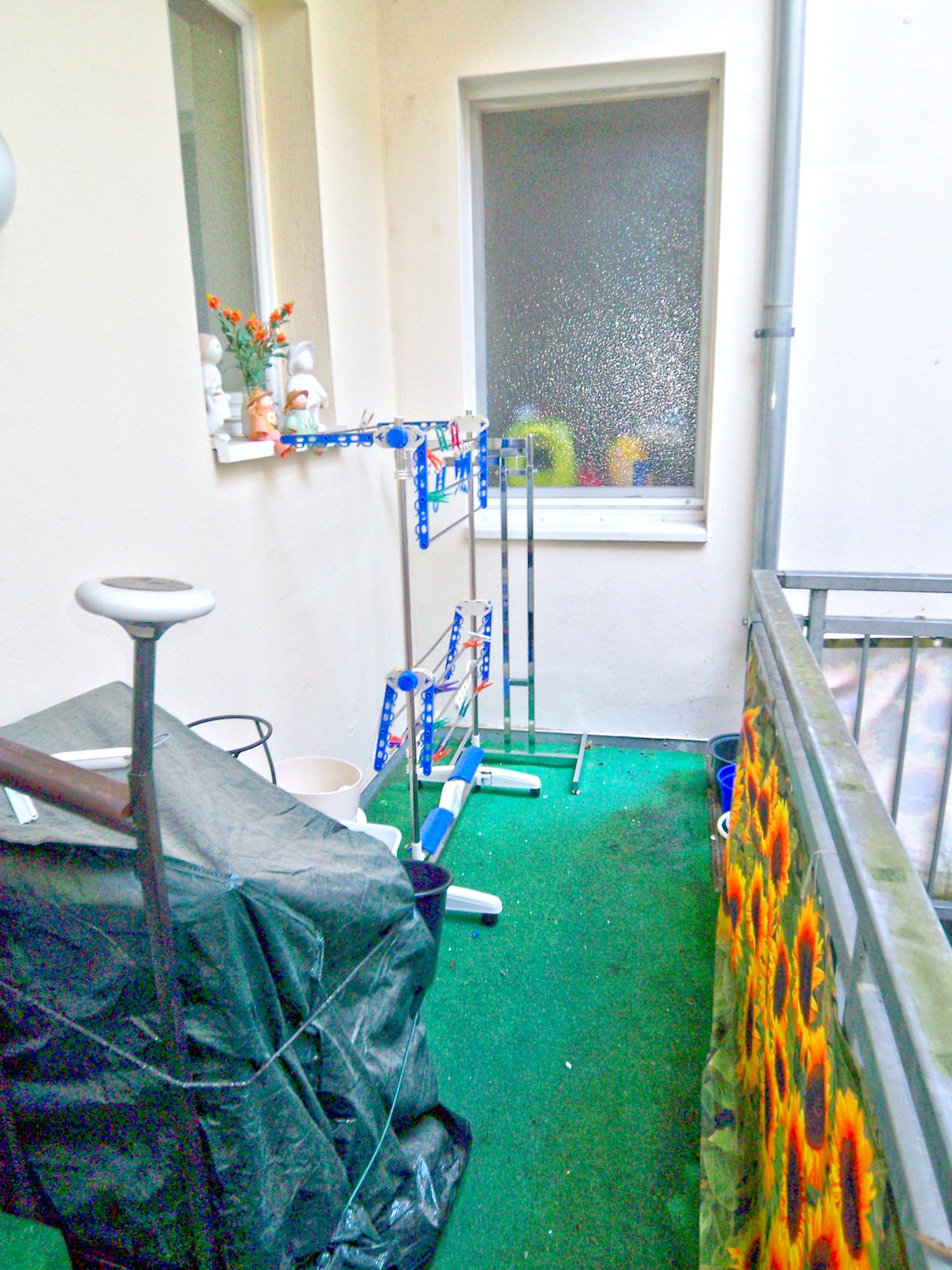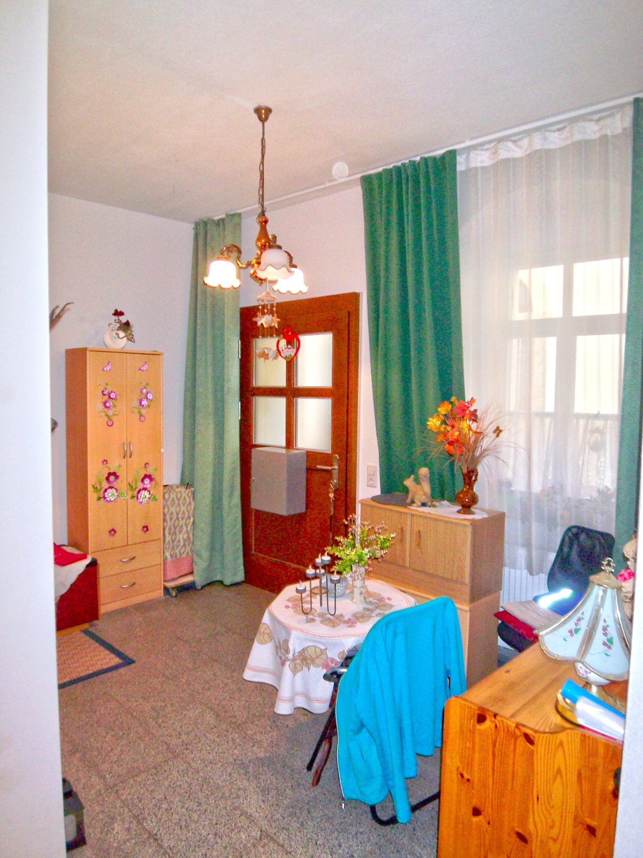 PVC-Designbelag, Fliesen, alle Wände mit Filzputz und weißem Farbanstrich, Gegensprechanlage, Kabel-TV, Holzthermofenster
