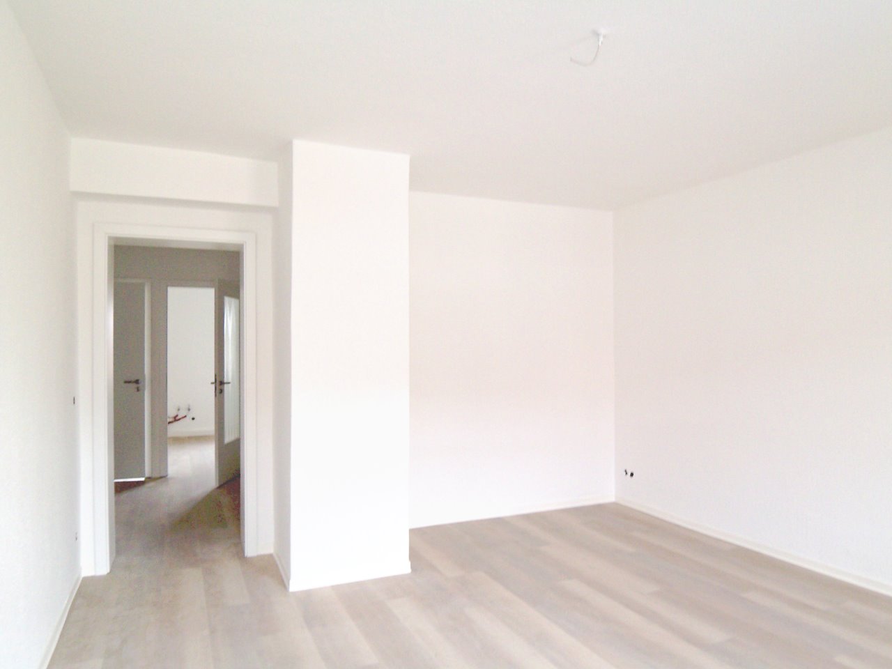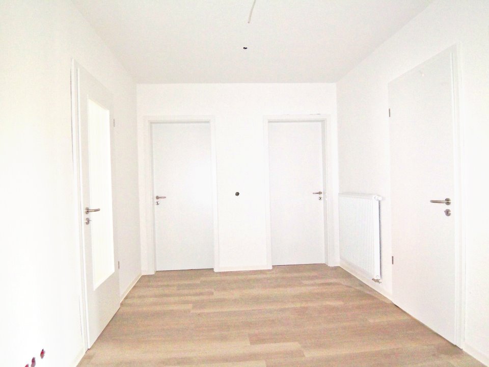 Fußböden mit Designbelag, Fliesen, Zimmertüren mit teilweise Glasausschnitt, Wände und Decken mit Raufasertapete weiß, Gegensprechanlage,